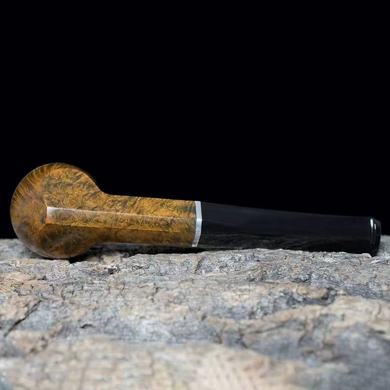 Diese 9 mm Bulldog-Pfeife hat nicht nur die ikonische „Bullenkopf“-Form, sondern auch eine einzigartige kreisförmige Rille.,Diese abgestuften Rillen unterstützen eine gleichmäßige Wärmeverteilung im Kopf und erlauben eine kontrollierte Verbrennung verschiedener Tabakformen – von dünn geschnittenen Blättern bis zu groben Stücken – ohne ungleichmäßiges Glühen oder scharfe Temperaturspitzen. Der Schaft hat einen diamantförmigen Querschnitt, was im Hinblick auf die weiche Rundung des Kopfes einen bewussten Kontrast darstellt und die visuelle Spannung verstärkt. Durch diese Facettierung wird die strukturelle Festigkeit erhöht, und der 9mm Aktivkohlefilter Pfeife wird ein auffälliges, skulpturales Erscheinungsbild verliehen.