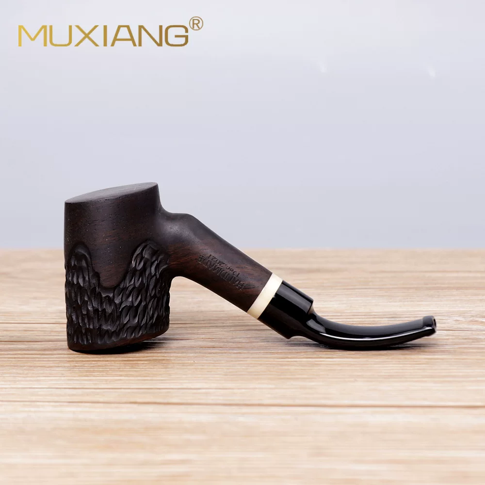 Gebogene 9mm Ebenholz-Tabakpfeife im Hammer-Stil
