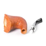 Um die natürliche Schönheit der sandgestrahlten Bruyèrepfeife zu unterstreichen, haben wir dem Mundstück filigrane Kunstfertigkeit verliehen. Es ist aus hochwertigem Acryl gefertigt, und an der Verbindungsstelle haben wir kunstvolle, handgedrechselte Silberringe angebracht, die einen attraktiven optischen Übergang zwischen der sandgestrahlten Oberfläche und dem Mundstück schaffen.