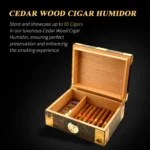 Bis zu 60 Zigarren Kapazität – Beim Öffnen des Table Top Humidors werden Sie von dem erfrischenden Duft frischen Zedernholzes begrüßt. Mit einem geräumigen Innenraum von 25 x 19 x 7 cm können bis zu 60 Zigarren (abhängig vom Ringmaß) aufbewahrt werden. Der herausnehmbare Zedernholzteiler ermöglicht eine einfache Organisation und die Aufbewahrung von Zigarren-Accessoires wie Feuerzeugen, Schneidern und Lochern.