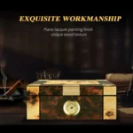 Luxuriöse Klavierlack-Lackierung – Der Table Top Humidor verfügt über eine luxuriöse Klavierlack-Lackierung, die zunehmend selten wird. Wie Kenner wissen, ist der Prozess der Klavierlack-Lackierung aufwendiger als andere herkömmliche Lackierungen. Diese einzigartige Holztextur erhöht den Reiz der Zigarrenbox und macht den Zigarren-Humidor noch spezieller.