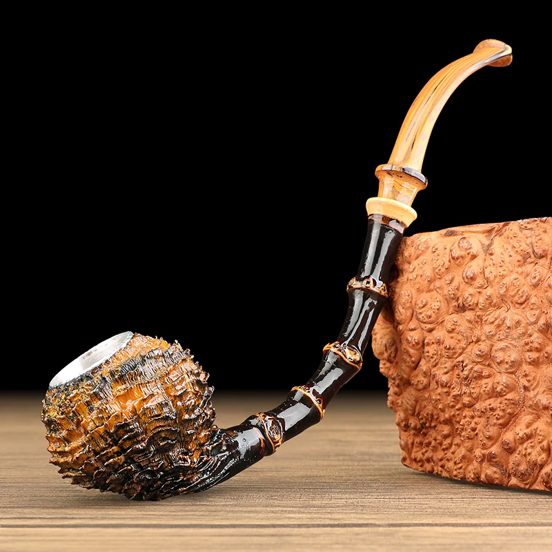 Pipa de fumar de gran cámara de madera de brezo tipo Ganoderma lucidum con boquilla Cumberland