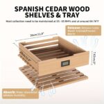 Se trata de un humidor atractivo, de alta calidad y digno de un mueble. El interior está forrado de forma natural con cedro español y los frentes de los cajones de cedro están acabados en nogal, al igual que el mueble. Este humidor encaja en cualquier hogar u oficina. La iluminación LED en tres lados es única y brillante. Ilumina el entorno y es un detalle muy bonito. El humidor puede funcionar con la red eléctrica o con pilas, por lo que puede colocarse en cualquier lugar.